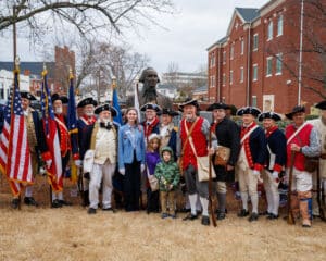 - A color guard will present and post the colors (various revolutionary flags) with muskets attending
